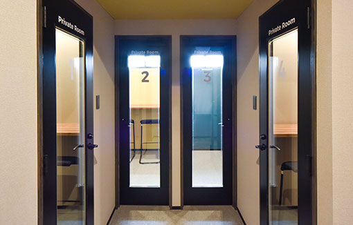 オンラインミーティング、WEB会議に最適化した個室を4部屋完備。