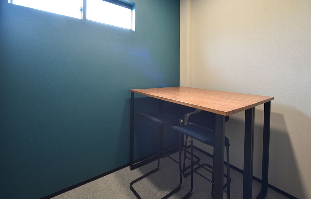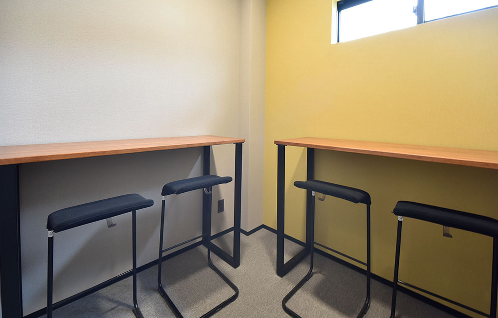 オンラインミーティング、WEB会議に最適化した個室を4部屋完備。